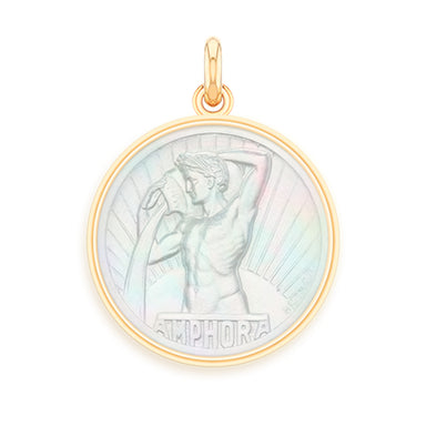 Make a sophisticated, personal statement with the timelessly chic Aquarius Pearl 18k Gold Zodiac Pendant Necklace. A sophisticated, gold zodiac pen...