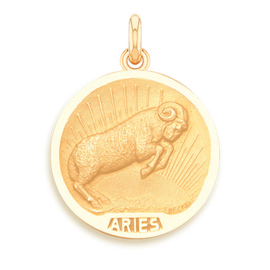 An exotic look is yours to own with this Aries 18k Gold Zodiac Pendant Necklace. This 18K gold zodiac sign medallion is designed to deliver a magn...