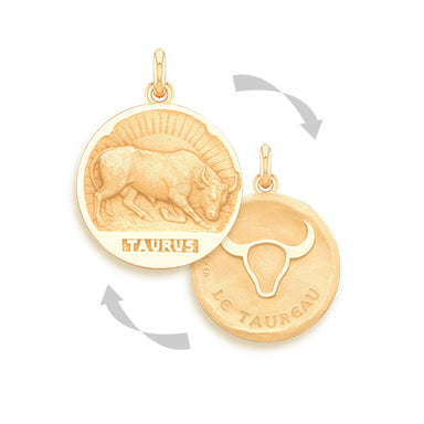 Add Taurus boldness to your ensemble with this Taurus Doublesided 18k Zodiac Pendant Necklace. It will match every necklace you have, this 18k yell...