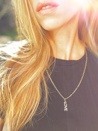 Perfect for those nights out with your loved ones, the Love Statement 14K Gold Necklace Charm is made from 14k gold and features diamond accents w...